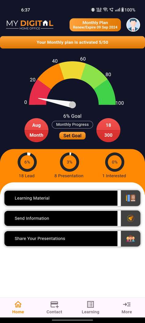 Total Goal for the Month: Track your progress towards achieving the overall goal for the month. View a comprehensive summary of your targets, including the number of leads to capture, presentations to share, and invitations to send.